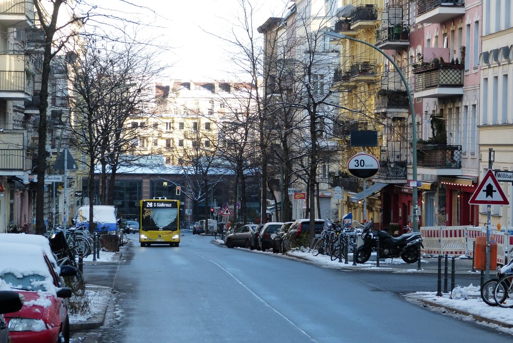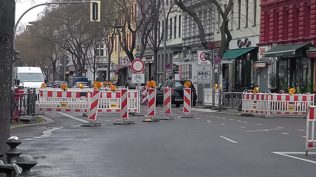 Leise rieselt der Schnee. Nicht viel, aber leise. Die Touristenströme in der Bergmannstraße sind dermaßen abgeebbt, dass man glaubt, das Gras würde aus den Pflasterfugen wachsen, wenn nicht Januar wäre. Doch noch etwas fällt auf: Der motorisierte Verkehr verhält sich anders als gewohnt. Den Grund dafür findet man schnell an der Ecke zur Zossener: Zeichen 250, Verbot für Fahrzeuge aller Art, mit Zusatzschild Radfahrer frei.