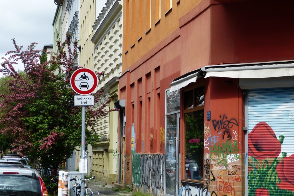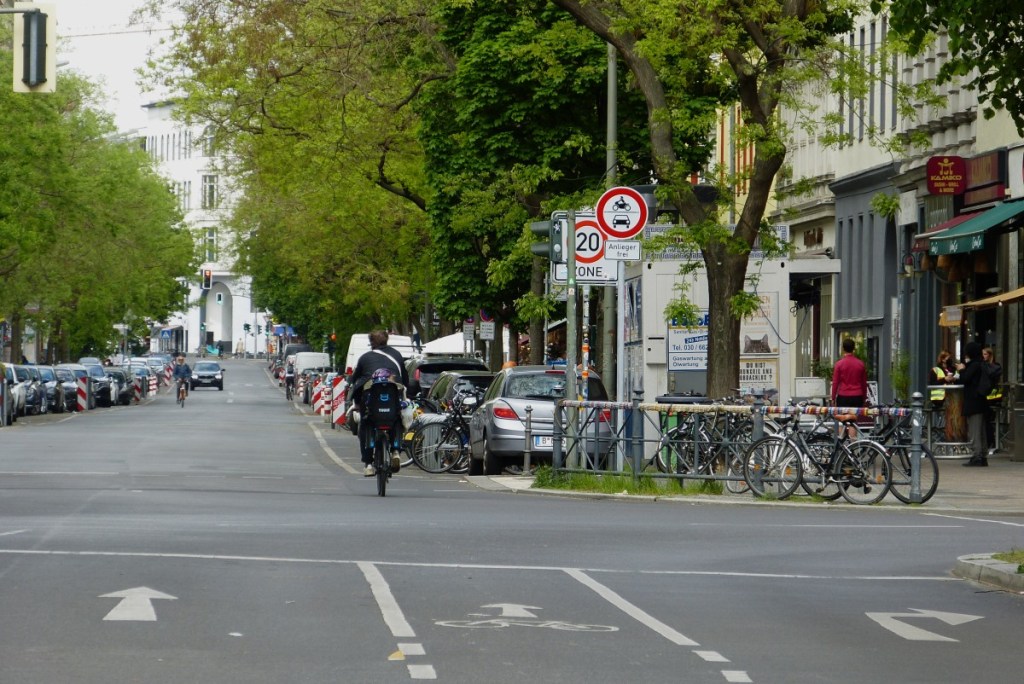 Keiner war so verwegen, gegen die Einbahnstraße zu fahren, wie es sonst im Kiez üblich ist, denn es gibt keine Ausweichstellen. Solange in den Ladezonen geparkt wird, funktioniert das auch weiterhin (nicht).